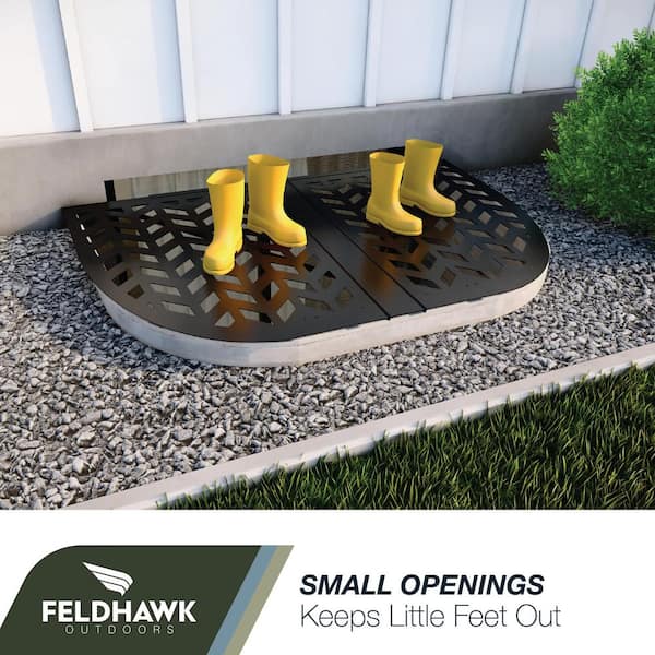 Window Well Cover 38 in. W x 58 in. H x 3 in. Chevron Pattern Steel Powder Coated D Shaped Egress Semi-Universal Fit