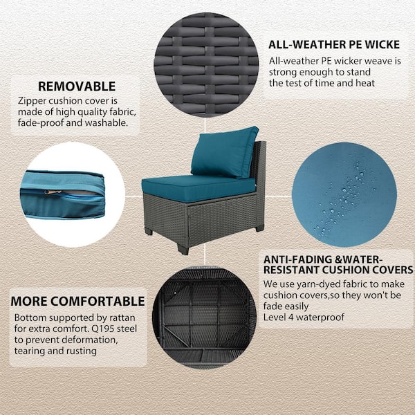 5-Piece Wicker Outdoor Patio Conversation Seating Sofa Set with Peacock Blue Cushions