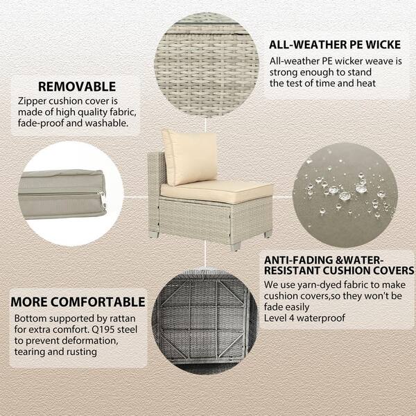 Gray 5-Piece Wicker Outdoor Patio Conversation Seating Sofa Set with Field Gray Cushions