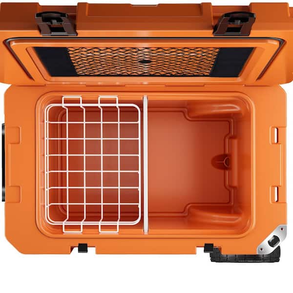 Orange 55 qt. Portable Chest Cooler, Leak-Proof Outdoor Insulated Cooler with Handle and Wheels, Bottle Opener