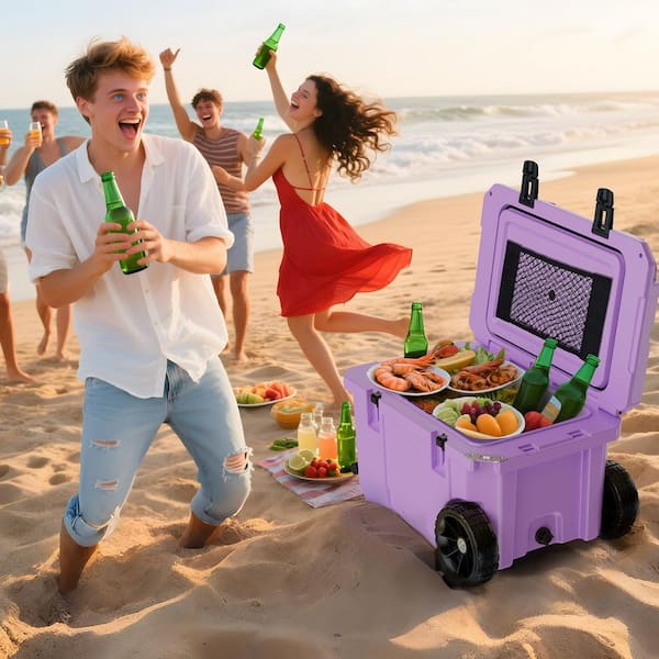 Purple 55 qt. Portable Chest Cooler, Leak-Proof Outdoor Insulated Cooler with Handle and Wheels, Bottle Opener