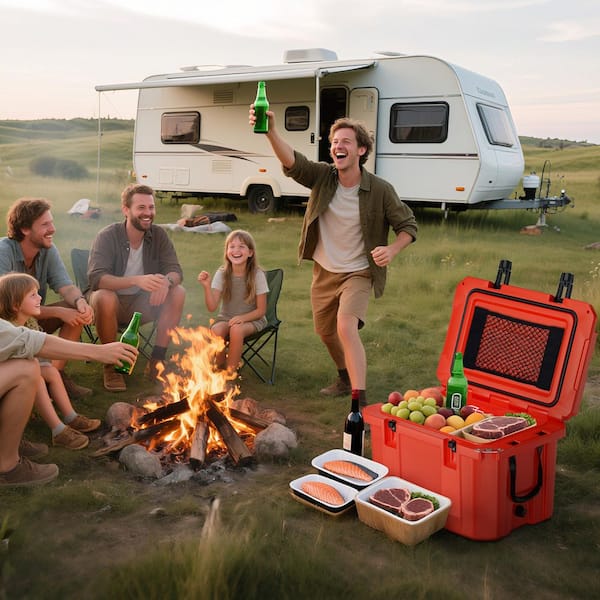 Red 60 qt. Portable Chest Cooler with Cup Holders, Nylon Rope Handles and Double Latches, Keeps Ice Up to 6-Days