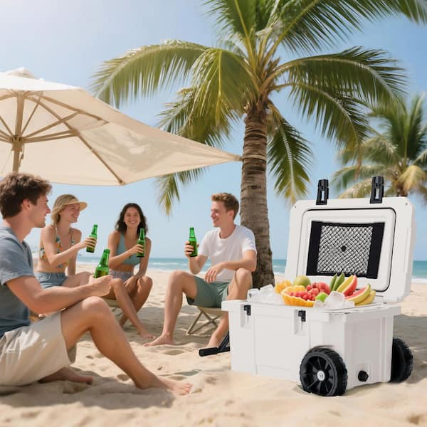 White 55 qt. Portable Chest Cooler, Leak-Proof Outdoor Insulated Cooler with Handle and Wheels, Bottle Opener