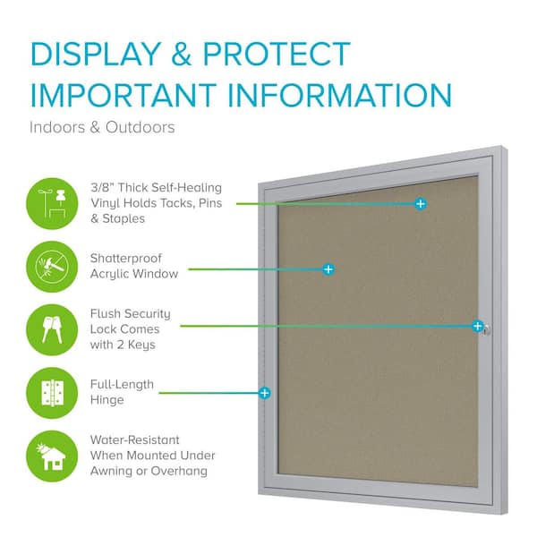 1-Door Enclosed 36 in. x 24 in. Bulletin Board, Vinyl, Caramel, 1-Pack