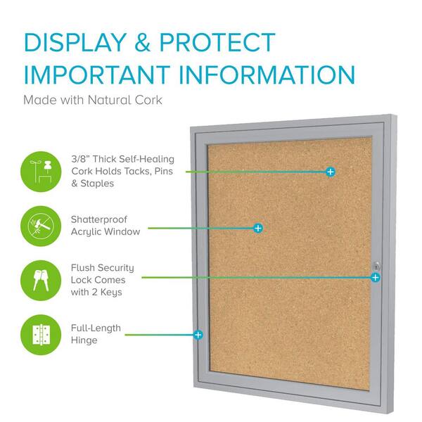 1-Door Enclosed 36 in. x 24 in. Bulletin Board, with Satin Frame, Natural Cork, 1-Pack