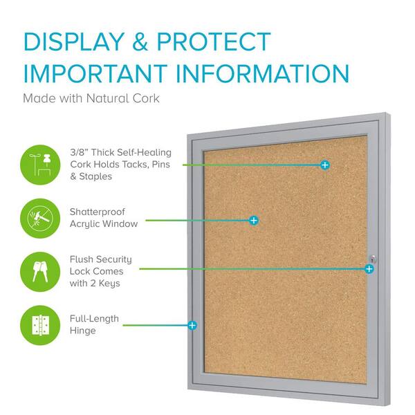 1-Door Enclosed 36 in. x 30 in. Bulletin Board, with Satin Frame, Natural Cork, 1-Pack