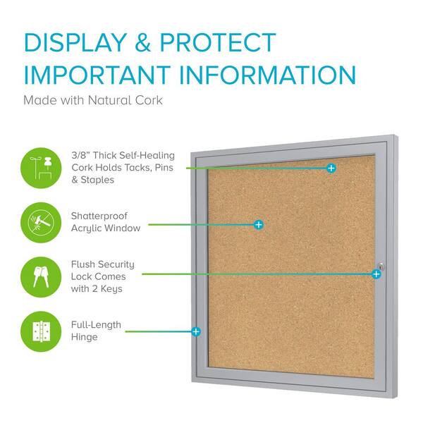 1-Door Enclosed 36 in. x 36 in. Bulletin Board, with Satin Frame, Natural Cork, 1-Pack