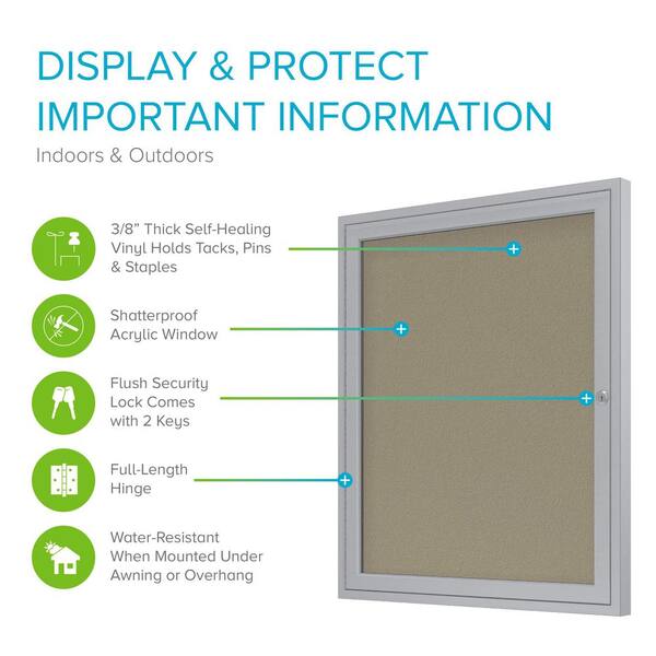 18in x 24in H Vinyl Enclosed Bulletin Board, 1 Door, Satin Aluminum Frame, Caramel