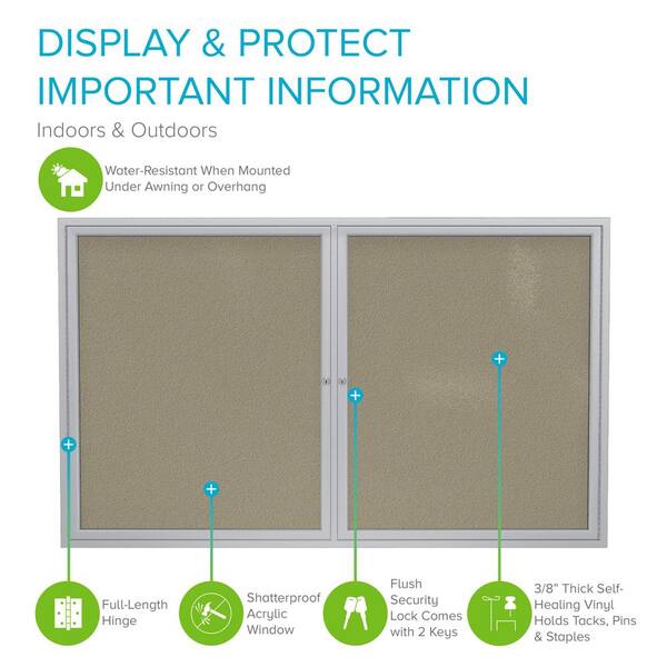2-Door Enclosed 36 in. x 48 in. Bulletin Board, Vinyl, Caramel, 1-Pack