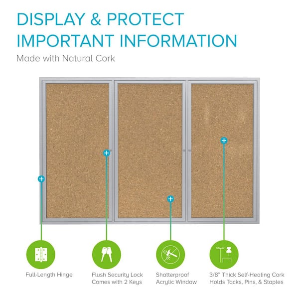 3-Door Enclosed 48 in. x 72 in. Bulletin Board, with Satin Frame, Natural Cork, (1-Pack)