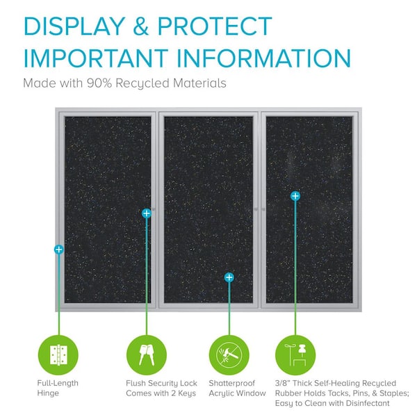 3-Door Enclosed 48 in. x 96 in. Bulletin Board, Recycled Rubber, Confetti, (1-Pack)
