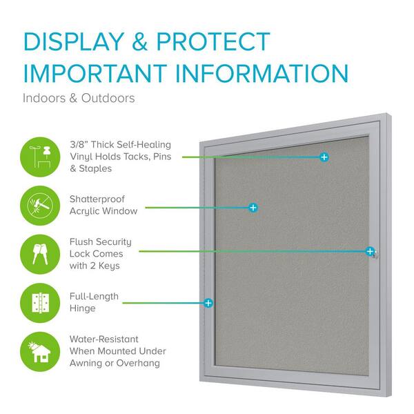 3 x 2 ft. Vinyl Enclosed Bulletin Board, 1 Door, Satin Aluminum Frame, Silver