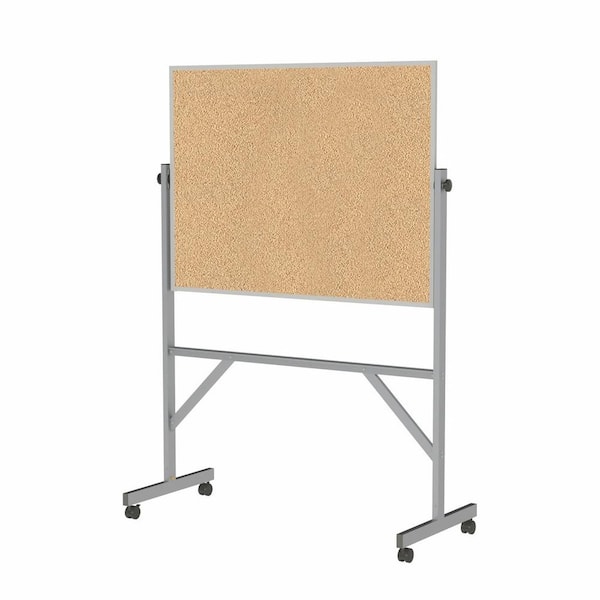 3 x 4 ft. Cork Reversible Mobile Bulletin Board, Satin Aluminum Frame, Natural