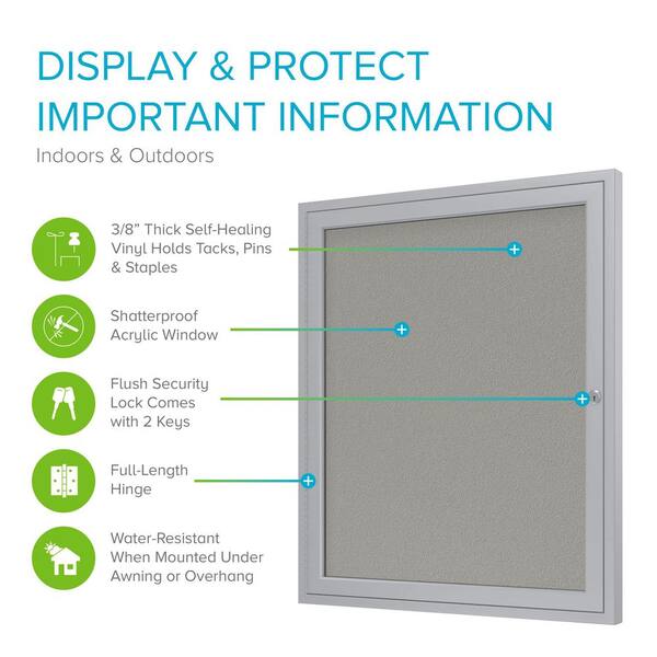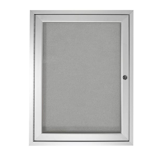 36 x 30in Vinyl Enclosed Bulletin Board, 1 Door, Satin Aluminum Frame, Silver