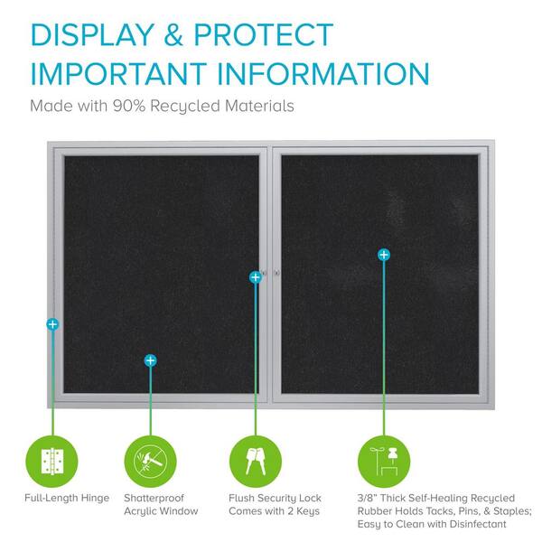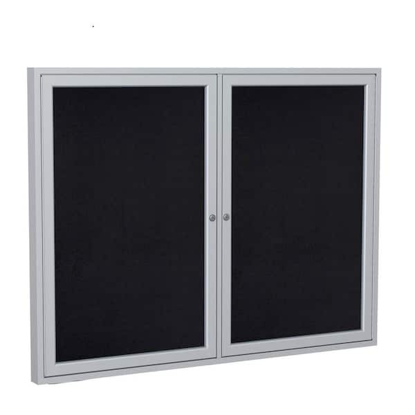 4 x 5 ft. Recycled Rubber Enclosed Bulletin Board, 2 Door, Satin Aluminum Frame, Black