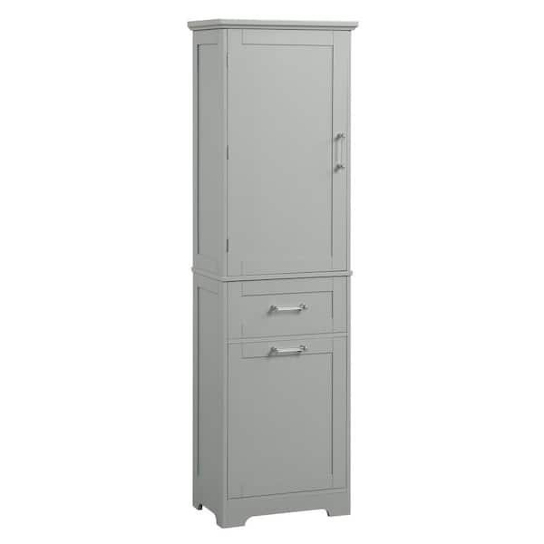 20 in. W x 13 in. D x 68 in. H Gray Linen Cabinet, Tall Bathroom Storage Cabinet with 2-Drawers and Adjustable Shelf