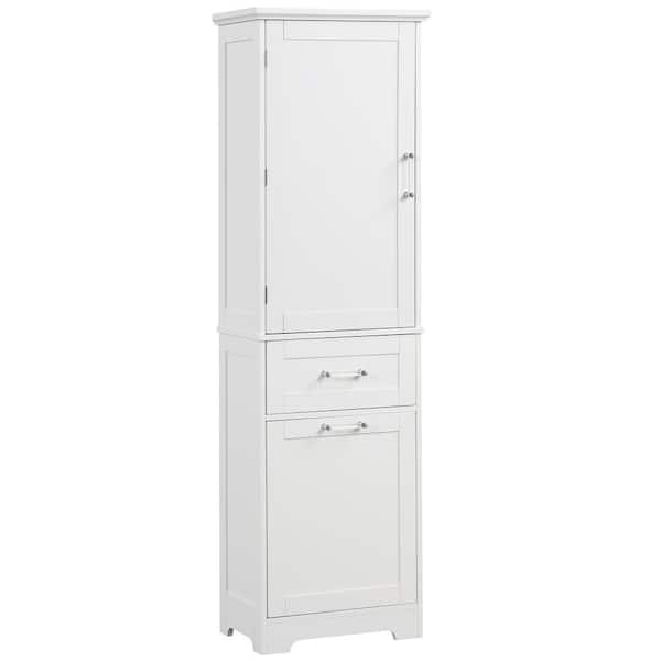 20 in. W x 13 in. D x 68 in. H White Linen Cabinet, Tall Bathroom Storage Cabinet with 2-Drawers and Adjustable Shelf