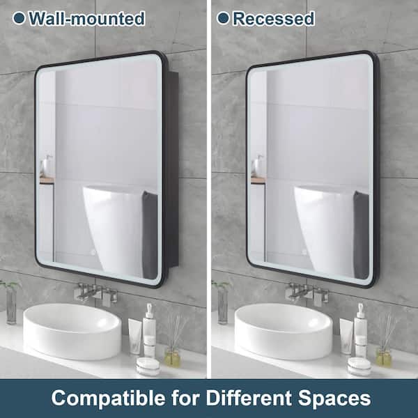 24 in. W x 30 in. H Rectangular LED Metal Medicine Cabinet with Mirror and Built-in Defogger