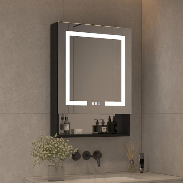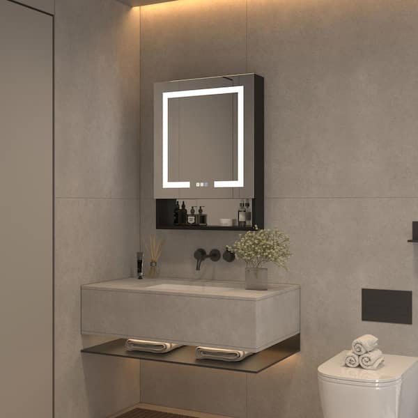 24 in. W x 32 in. H Rectangular Aluminum Recessed/Surface Mount Medicine Cabinet with Mirror & USB Outlet, Right