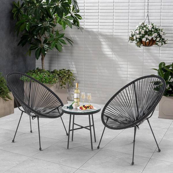 3 Piece Black Patio Metal Outdoor Bistro Conversation Set with Side Table, Flexible Rope Furniture Outdoor with Table