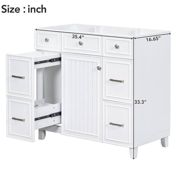35.4 in. W Bath Vanity Cabinet Without Top in White with 3-Drawers, Adjustable Shelf