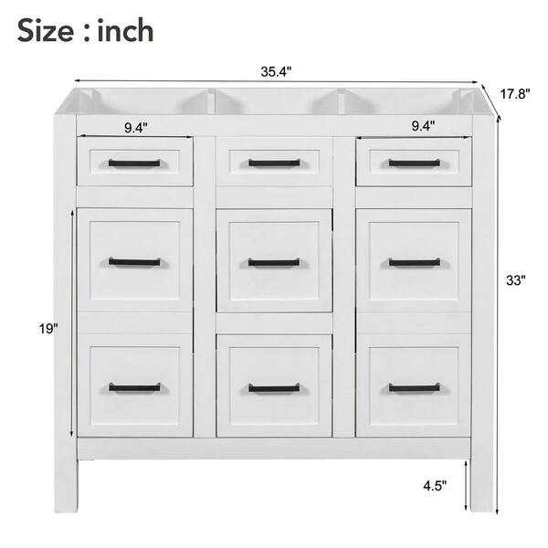 35.4 in. W Bath Vanity Cabinet without Top in White with 4-Drawers, 2-Doors and Adjustable Shelf