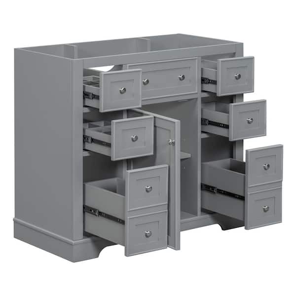 35.6 in. W. x 17.9 in. D x 33.4 in. H Bath Vanity Cabinet without Top in Gray, 6-Drawers