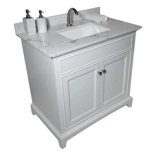37 in. W x 22 in. D Engineered Stone Composite White Rectangular Single Sink Bathroom Vanity Top in Gray