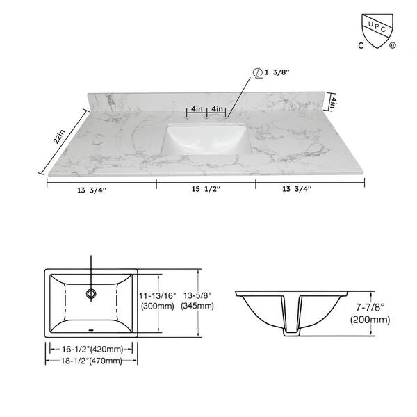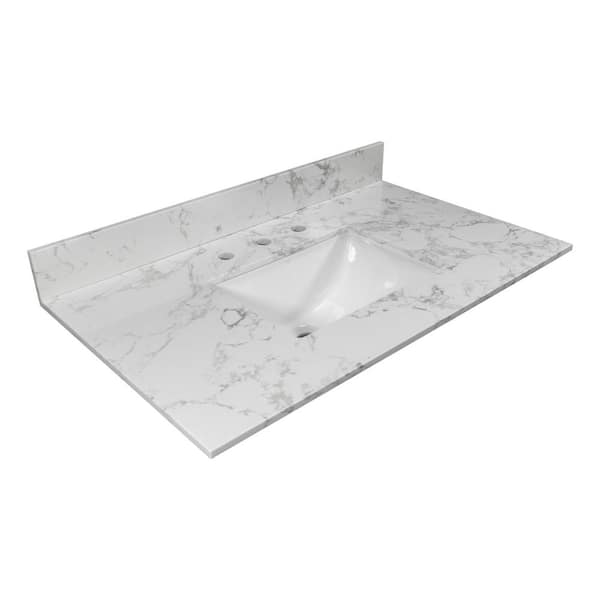 43 in. W x 22 in. D Engineered Stone Composite White Rectangular Single Sink Bathroom Vanity Top in Gray