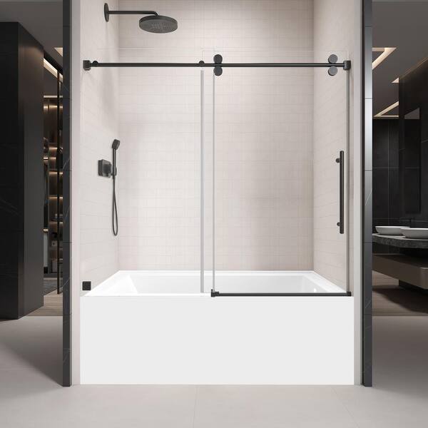 60 in. W x 66 in. H Frameless Sliding Tub Door in Matte Black with 3/8 in. (10mm) Tempered Clear Glass