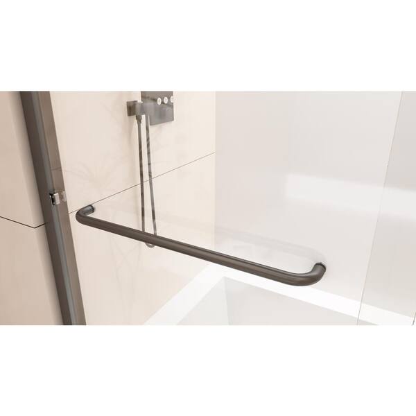 60 in. W x 70 in. H Sliding Semi Frameless Shower Door in Matte Black with Clear Tempered Glass and Towel Bar