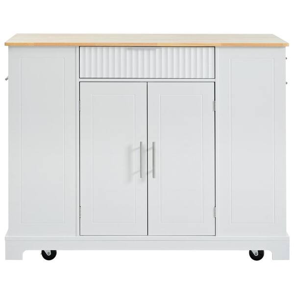 White Wood 48.5 in. Kitchen Island with 2 AC Outlets, 1 USB Port, and 1 Type-C, Kitchen Cart with 3 Open Side Racks