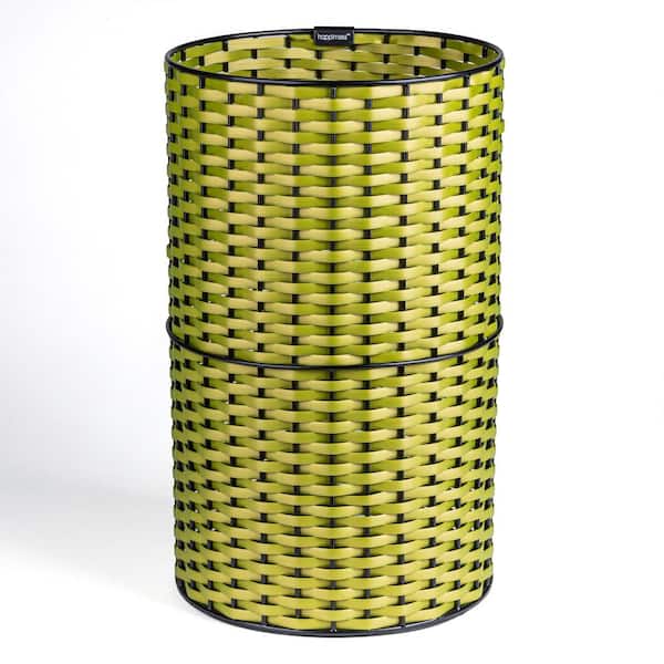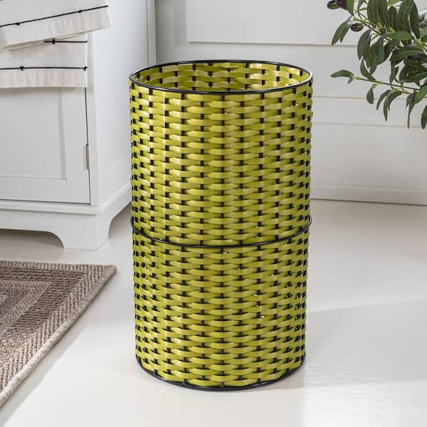 Cecil Modern 4.13 Gal. Faux Wicker Cylinder Waste Basket, Pear Green/Black