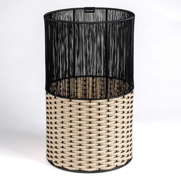 Harper Modern 4.13 Gal. 2-Tone Faux Wicker Cylinder Waste Basket, Black/Cream