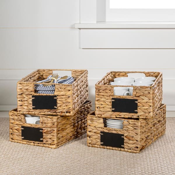 Lane 12 in. x 5.12 in. Farmhouse Metal/Hyacinth Natural Pantry Decorative Baskets with Labels and Handles (Set of 4)