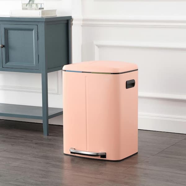 Marco Rectangular 10.6 Gal. Flamingo Pink Double Bucket Trash Can with Soft-Close Lid