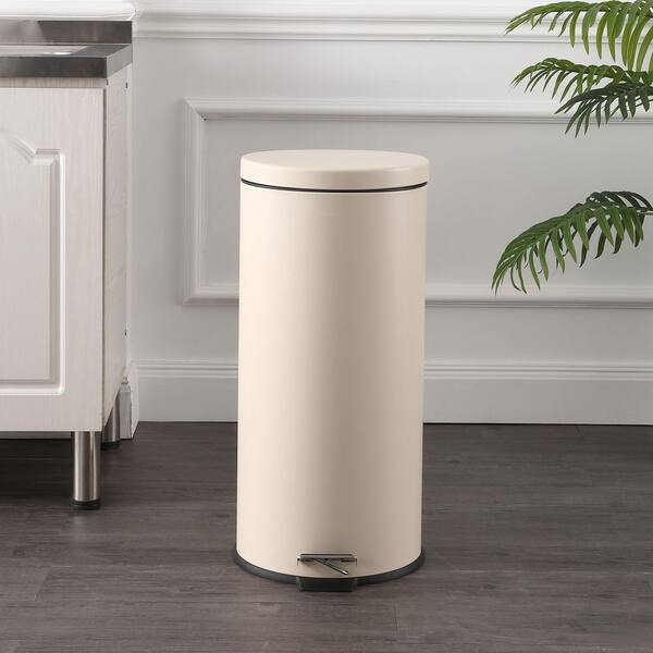 Oscar 8 Gal. Step-Open Trash Can with Free Mini Trash Can, Limestone Beige