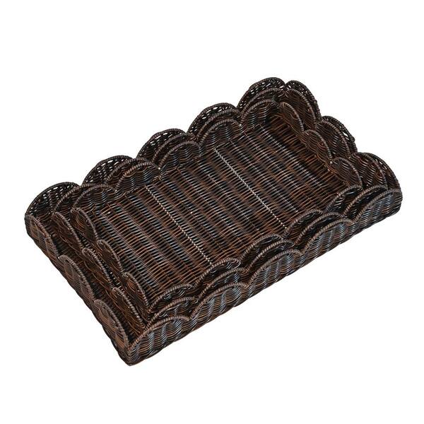 Parker Southwestern Cottage Resin Scalloped Rectangular Decorative Serving Trays, Dark Brown (Set of 3)