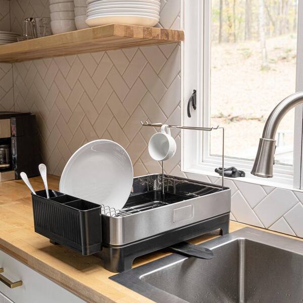 Simple 20.5 in. Stainless Steel White Fingerprint-Proof Stainless Steel Dish Rack with Tray and Wine Glass Holder
