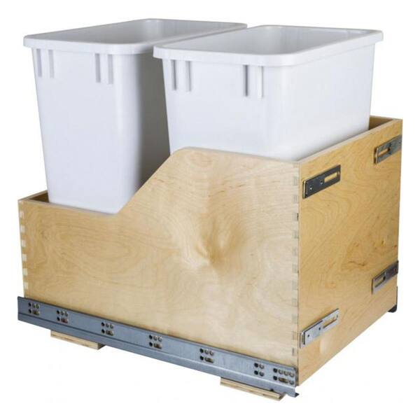 14-1/4 in. W Birch Double 35 qt. White Waste Container Pull-Out Door Mountable