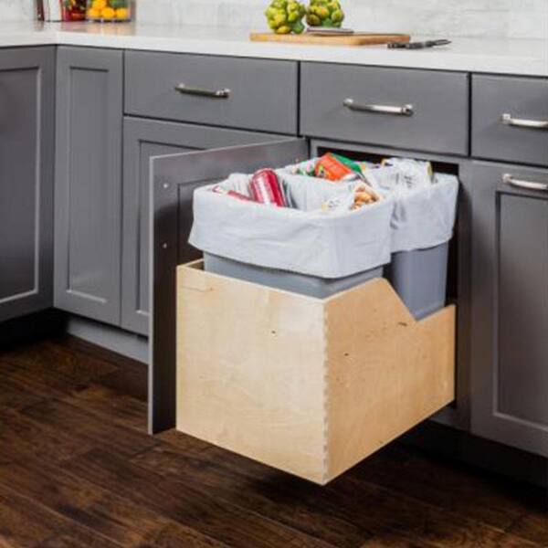 15 in. W Birch Double 35 qt. Gray Waste Container Pull-Out Non-Door Mountable