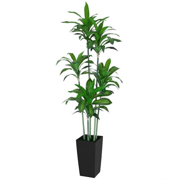 6 ft. Artificial Trees, Artificial Dracaena Trees with Black Planter, Tall Faux Tree in Black Tall Planter