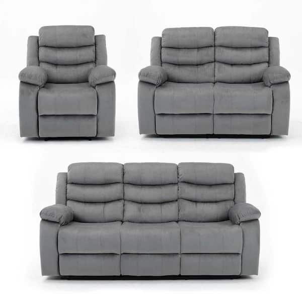 Yingj 166 in. W 6 Seat Microfiber 3-Piece Straight Reclining Sofa set in Gray