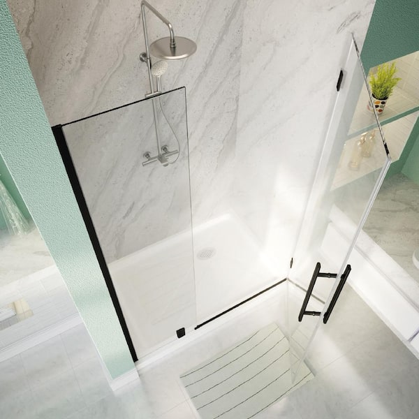 48 in. W x 72 in. H Frameless Pivot Shower Door in Matte Black with Clear Glass