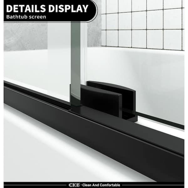 57-60 in. W x 60 in. H Sliding Frameless Tub Door in Matte Black with Clear Glass