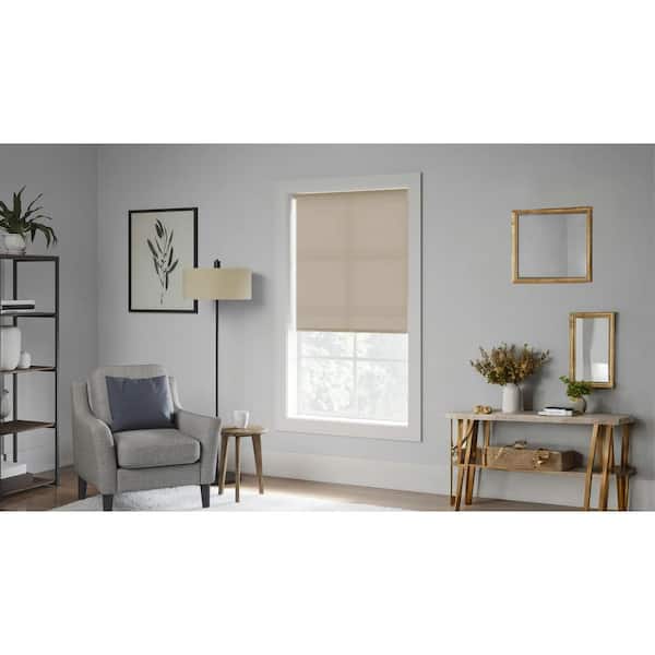 Cut-to-Size 35 in. W x 73 in. L Beige Cordless Light Filtering Polyester Fabric Roller Shade