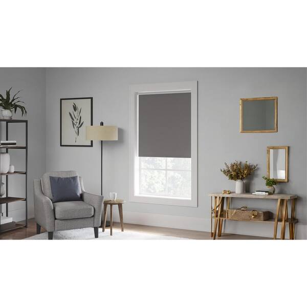Cut-to-Width 44 in. W x 73 in. L Charcoal Cordless Blackout Polyester Fabric Roller Shade