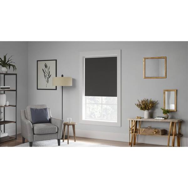 Cut-to-Width 48.5 in. W x 73 in. L Black Cordless Blackout Polyester Fabric Roller Shade
