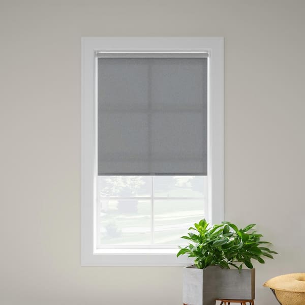Slate Cordless UV Blocking Reflective Polyester Solar Screen Roller Shade 29.5 in. W x 74 in. L