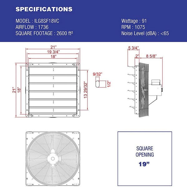 1736 CFM Silver Electric Powered Gable Mount Shutter Fan/Vent